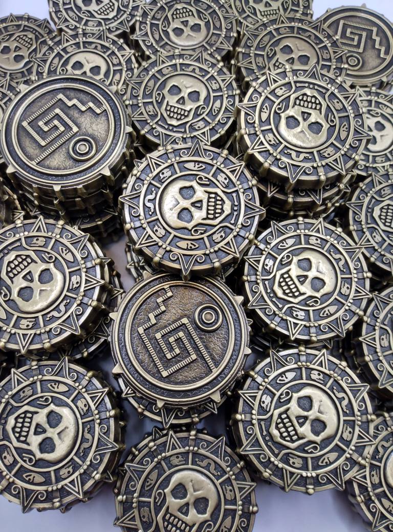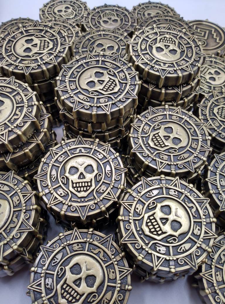 Replica piece of aztec gold from the cinema classic swashbuckler. Original new sculpt developed into a diecast antique gold piece